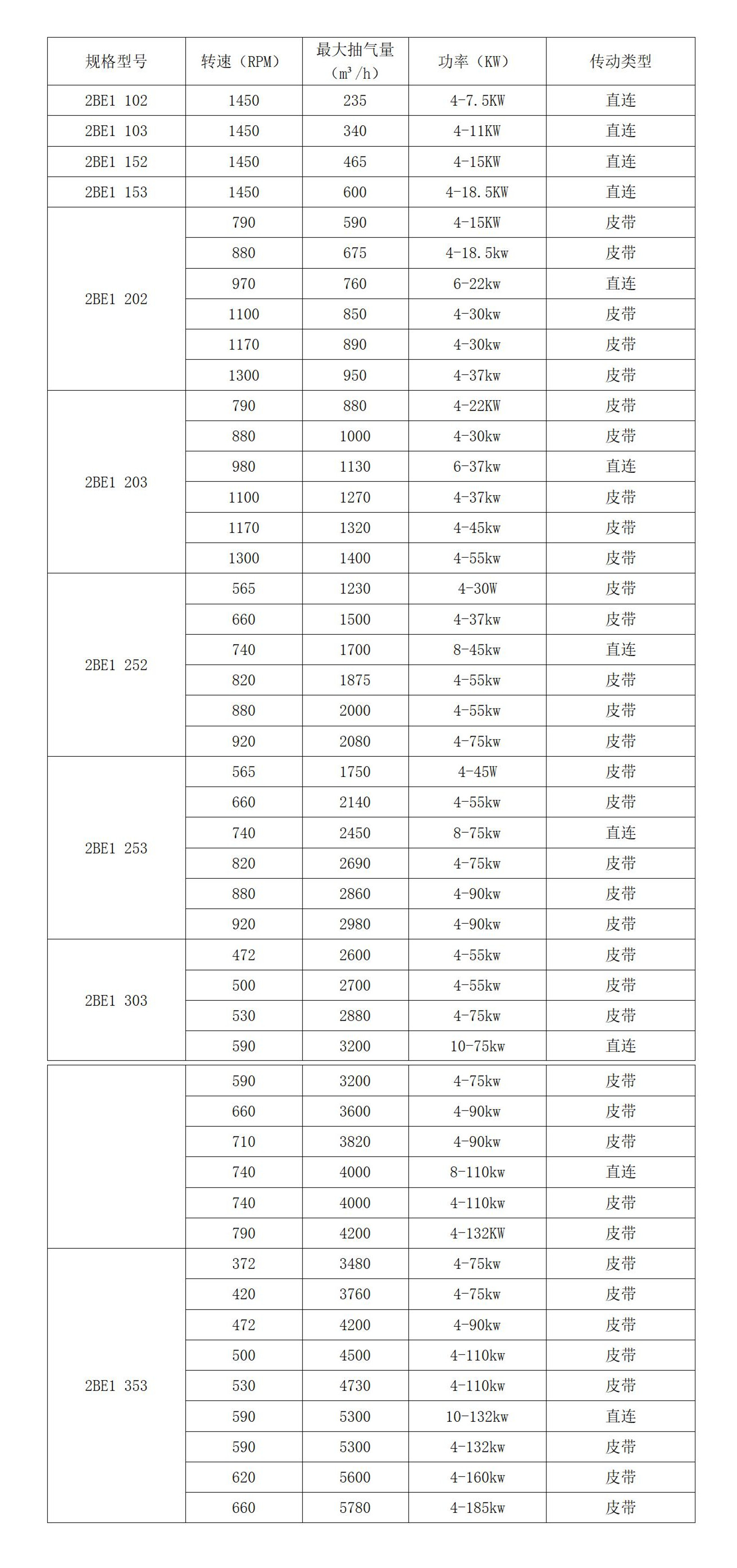 2BE1系列液環(huán)真空泵技術參數(shù):