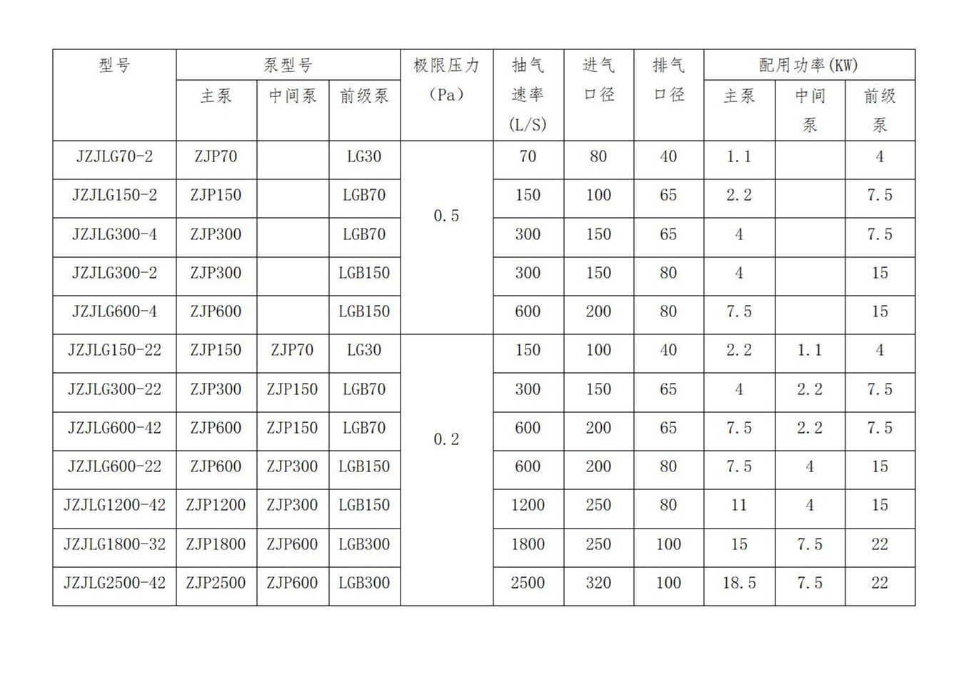 JZJLG羅茨螺桿真空機(jī)組技術(shù)參數(shù)